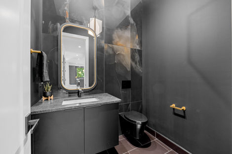 Welcome to this exquisite modern duplex, a harmonious blend of contemporary design and luxury finishes, each side offering a distinct yet complementary aesthetic. The dark-accented side exudes sophistication with rich walnut wood throughout and striking black accents, creating a warm and inviting atmosphere. The open-plan living space, highlighted by floor-to-ceiling windows, features a chef's dream kitchen with sleek black cabinetry and high-end appliances. In contrast, the bright and airy white side of the duplex is bathed in white tones and white oak accents, exuding a sense of calm and spaciousness. The minimalist design includes a modern kitchen with white cabinetry and a full wall of quartz countertop that wraps up the wall front of the sink. This duplex gives you the best of both worlds – the bold sophistication of dark elegance and the clean look of light colors and white oak.